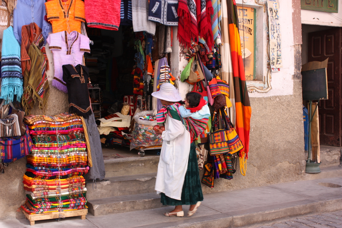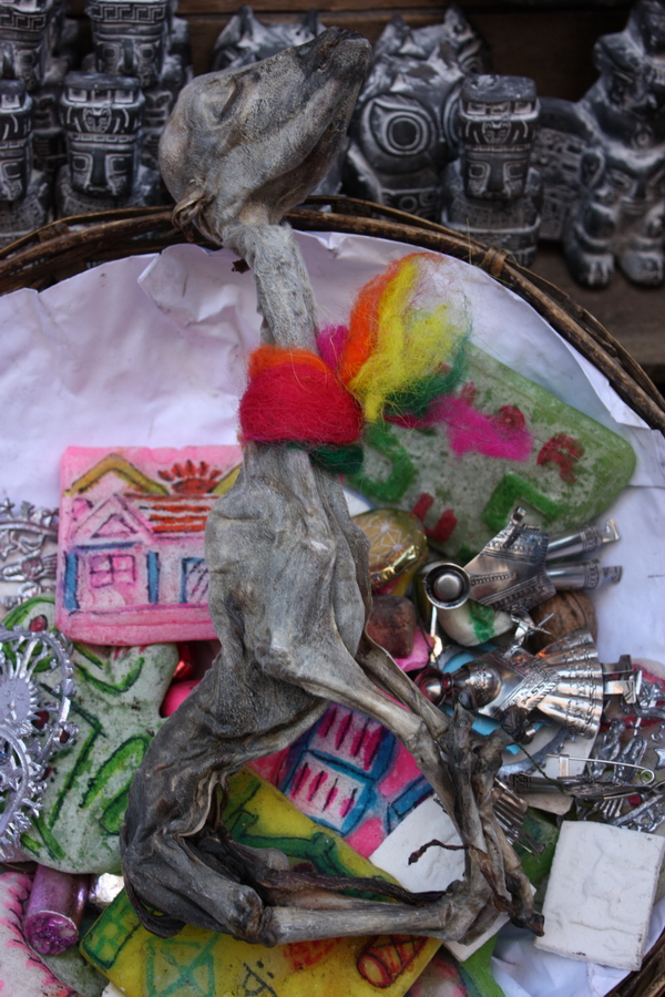 Çarşı olarak anılan bölge aslında tezgahları dışarıya kadar çıkmış olan sömürge döneminden kalma dükkanların sıra sıra dizildiği uzunca bir cadde. Cadde boyunca kafanızı kaldırdığınızda sarkan elektrik kabloları dekorun bir bölümünü oluşturuyor. Tezgahlar rengarenk. Minik heykelcikler, otlar, geleneksel ilaçlatr, çeşitli taşlar, renkli iplikler gibi çeşit çeşit büyücülük malzemeleri süslüyor tezgahları. Bu hayvan heykelciklerinden baykuş aklı, kondor iyi yolculuğu, totem çalışkanlığı, kaplumbağa uzun ömrü, kurbağa zenginliği, güneş sağlığı ve bir çift insan aşkı simgeliyor. Yani neye ihtiyacınız varsa ona göre istediğiniz totemi alabiliyorsunuz.