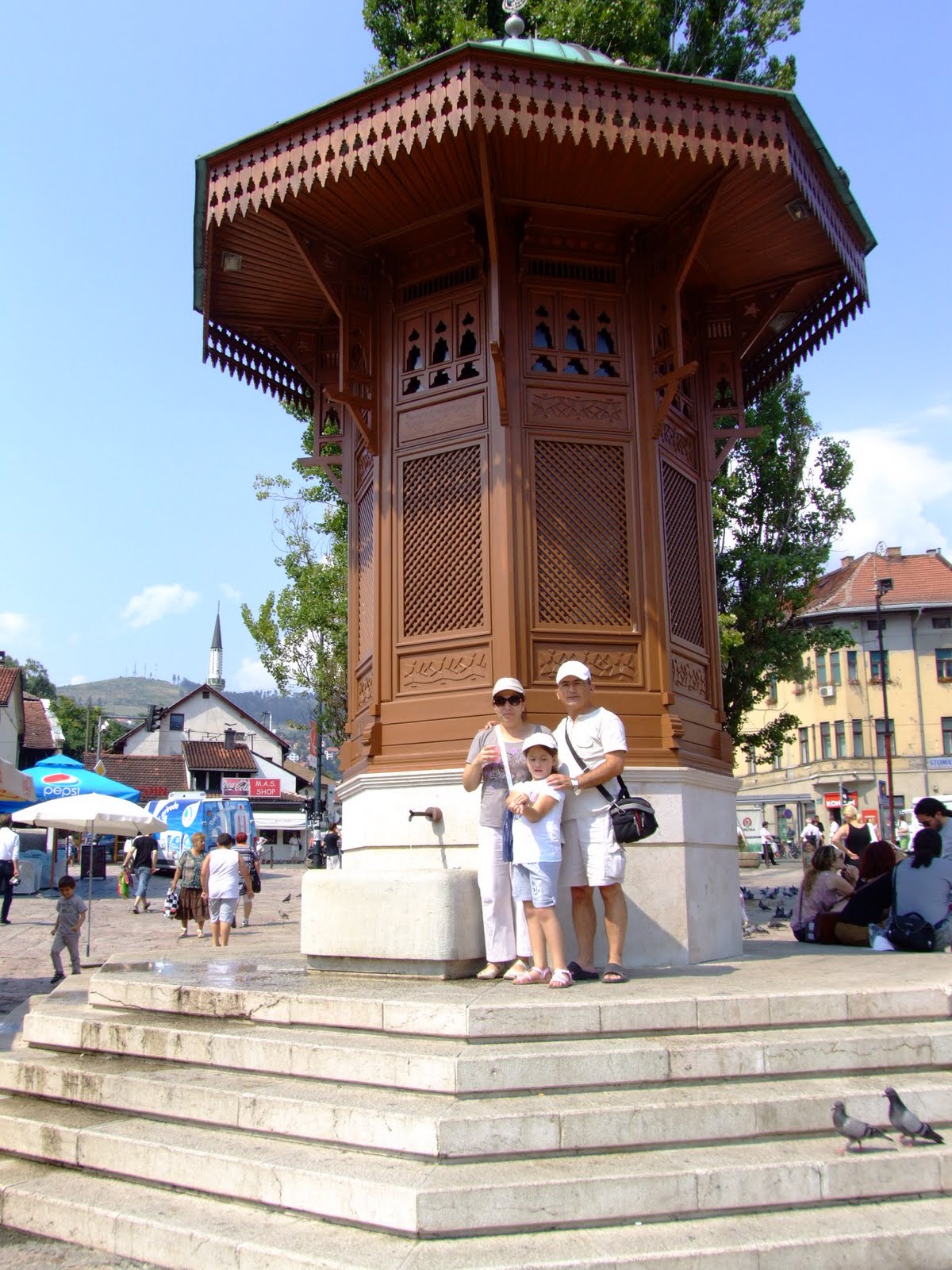 Başçarşı gerçekten gez gez bitmeyecek ve bıkılmayacak bir yer. Başçarşıya girin ve burada kaybolun derlermiş.. Ancak öyle gezersiniz. Ama Bosna’da para durumunuzu önceden ayarlamalısınız. Döviz büroları erken kapanıyor ve Pazar günleri hiçbir yer açık değil. Gece çarşı bildiğiniz bir gösteri meydanı. Boşnak kızlar bizim düğünlerde giydiğimiz kıyafetlerle alımlı alımlı çarşıda dolaşıyor. Hepsi bir manken kadar alımlı. Müthiş mini etekleri, güzel kıyafetleri, aşırı yüksek ayakkabılarıyla şehirde dolaşıyorlar. Yolun sonunda tüm şehitlerin anısına yanan bir meşale var 24 saat bu ateş yanıyor. Sonra yürüyerek Latin köprüsüne vardık. Orada Avusturya-Macaristan veliahtı Ferdinand’ın vurulduğu yerde biraz oturduk. Akşam yemeği için oğlum Aytaç’ın isteği üzerine Galatasaraylı Tarik Hodzic’in yerine gittik. Kendisi Galatasaraydaki futbol hayatından sonra burada bir kebapçı dükkanı açmış. Cevabcici buranın ünlü bir yemeği. Onu tercih ettik. Gerçekten yenebilecek bir yemek. Bosna da börek, cevabici, previsjicka ve türk kahvesi tadılacak yiyeceklerin başında geliyormuş. Bizde bu öneriye uyduk.. hepsinin tadına baktık. Saraybosna’yı gerçekten herkese önerebileceğimiz bir yer olarak düşündük. Türkiye’den uçakla 2-3 günlüğüne gelinerek gezilebilecek ve anıları bol bir yer.. Herkese tavsiye ediyoruz.