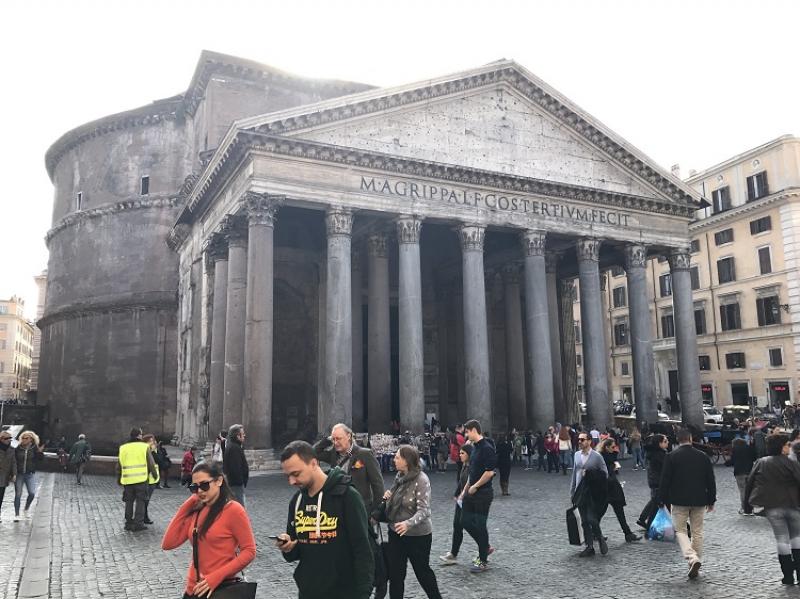 Pantheon: Bozuk paralarınızı attınız, dileklerinizi tuttunuz, harika resimler çektirdiniz ve hatta oturup soluklandıktan sonra dondurmanızı yediniz. Şimdi çeşmeyi arkanıza alın ve sağ tarafta yer alan sokağı takip edin. Yaklaşık 10 dakika yürüdükten sonra bence Roma’nın en muhteşem yapılarından biri olan Pantheon’a geleceksiniz. Burası gerçekten Kolezyum gibi Antik Roma Dönemi’nden kalan çok önemli bir yapı. Hristiyanlıktan önceki dönemde Roma inanışında yer alan pagan tanrılara adanmış yapı M.S 118-125 yılları arasında İmparator Hadrian tarafından yaptırılmış. Daha sonra ise M.S 609’da Bakire Meryem Kilisesi olarak kutsanmış. Yapının en özel yanlarından biri bence kubbesi. O dönem için bir mimari ve mühendislik harikası diyebiliriz çünkü kubbe 43,5 metre çapı ve yüksekliği o dönem has kullanılan bir beton tekniği ile kendisine hayran bırakıyor. İçeriğe girdiğimde bir süre kubbeyi incelemekten kendimi alamadım. Kubbeyi özel kılan başka bir özellik ise içeriyi aydınlatmak için kullanılmış Oculus (göz) adı verilen büyük delik. Zemin mermerleri ise ayrı bir güzellik barındırıyor. Tabi burayı özel kılan başka bir ayrıntı ise burada gömülü olan ünlüler. En başta Rönesans sanatçısı Raffaello girişte sol tarafta yer alan lahitte gömülüymüş. Ayrıca Kraliçe Margherita eşi Kral I. Umberto ile yandaki şapelde yatmaktaymış. Yapının içinden ve dışından ayrı etkilenmemek mümkün değil. Yapının çevresi belediye ve birçok ülkeye ait konsoloslukların olması nedeniyle ayrıca hareketli. Ayrıca İtalya’nın önemli finans merkezi olarak kabul ediliyor. Ulaşım ile ilgili dediğim gibi Aşk Çeşmesi'nden buraya gelmek çok kolay. Hiçbir şey yapamıyorsanız kalabalığı takip edin zaten buraya ulaşacaksınız.