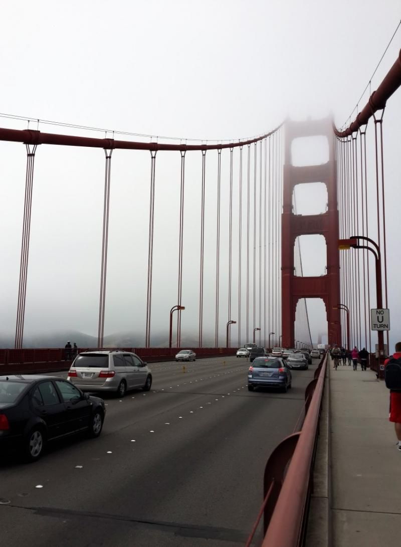 Golden Gate Park’dan köprüye bisikletle yaklaşık 45 dakikalık bir sürede ulaşıyorsunuz. Bisikletle köprüden geçmek tahminimden daha zordu çünkü köprünün şehre bakan tarafından yayalar da geçiyor bu yüzden hem çok kalabalık hem de köprü biraz rüzgârlı. Dönüşü ise yayaların yürümesinin yasak olduğu diğer taraftan yaptım. Eğer aracınız varsa köprüyü geçtikten sonra Sausalito adlı bölgeyi gidip mutlaka görün. Ben daha önceki ziyaretlerimde gitmiş olduğum için bu sefer gitmedim ama çok güzel bir yerleşim bölgesi. İstanbul’daki Bebek’i çok andırıyor.