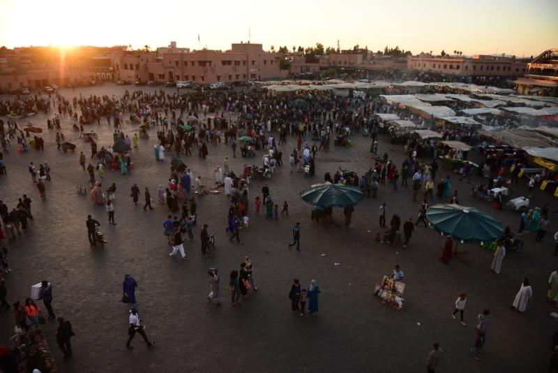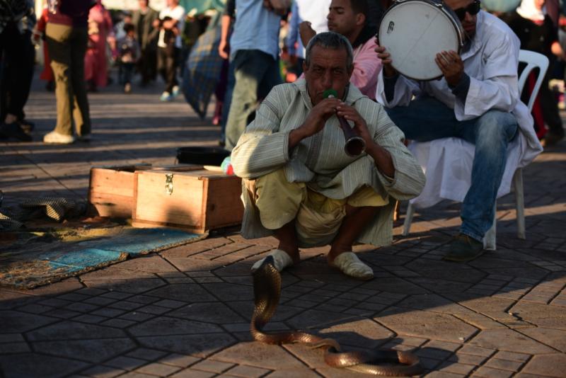 Marakeş'e kadar olan yolumuz yaklaşık 200 km'lik ve iki saatlik bir yol olmasına rağmen fotoğrafçılarla gezmenin güzelliği olsa gerek sık sık aracı durdurup güzel kareler yakalamaya uğraşıyoruz. Marakeş'e vardığımızda bizi toprak rengi bir şehir karşılıyor. Üç kattan fazla bir yapının olmadığı bu kızıl şehir, o Fas kitaplarında gördüğümüz şehrin ta kendisi. Sokaklarda faytonlar, otobüsler, motosiklet ve bisikletler. Trafik düzeninin olmadığı tam bir keşmekeş. Aracımızdan inip o "sinirlerimizi bırakıp gitmemiz gereken" şehre dalıyoruz. O ünlü Cami Ül-Fena Meydanı'na geldiğimizde okuduklarımdan çok daha fazlasını gördüm burada. Bu meydanın anlamı "fanilerin toplanma yeri". Rivayete göre de daha eskilerden kesilen kellelerin ibret olsun diye sergilendiği alan. Bana kalırsa burası tam adına yakışan "fena" bir yer, ama bu fena yeri görmelisiniz.