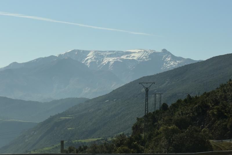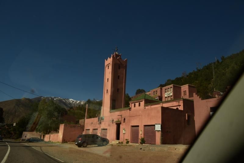 Gün boyu tırmandığımız bu sıra dağları öyle küçümsemeyin çünkü Türkiye’nin bir ucundan bir ucuna olan mesafeden daha fazla bir mesafeye uzanmış (2.400 km), Fas, Cezayir ve Tunus’u kapsayan sıra dağlardan bahsediyorum. Bu sıra dağların en yüksek bölgesi ise Fas sınırları içerisinde (4.167 mt). Bu sıra dağlara mükemmel bir kıvrımla tırmanıyorsunuz. Bizim başımıza güneş geçmişken yanı başımızdaki Atlas Dağları’nın başına kar geçmiş durumda. Öğle yemeğini adını hatırlamadığım küçük bir kasabada yedik.