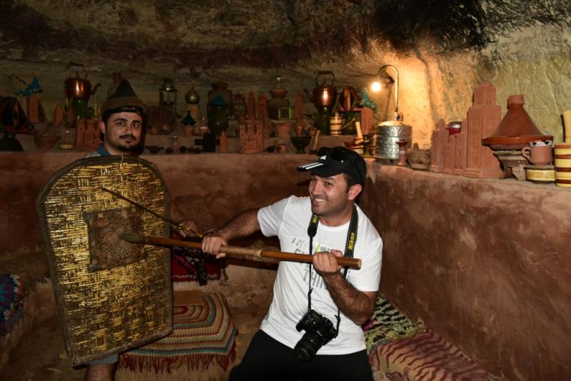 Büyük Sahra’yı görmeden önce ilk durağımız Varzazat (Quarzazate). Burası tam Fas fotoğraflarında gördüğünüz toprak rengi kerpiç evlerle dolu tarihi bir kent. Kent girişinde yılan oynatıcıları ve hediyelik eşya satan seyyar satıcılar bizi karşıladı. Buradan yılanı ikinci kez boynuma aldım ve yere eğildiğimde o kendine özgü sesi çıkararak elimin arasından kaydı. Derisi pul pul ve oldukça sert ama tiksindirici bir hayvan değil, en azından benim için. Bu şehrin önemli bir özelliği var çevresinde bizim gezip görebildiğimiz iki tane çok büyük film stüdyoları var. Örneğin Russell Crowe’un oynadığı Gladyatör dahil çok fazla film bu stüdyolarda çekilmiş. Bu filmler için adeta Roma dönemini andıran oldukça gerçekçi bir şehir devleti inşa etmişler ve bunu da turizme açmışlar.