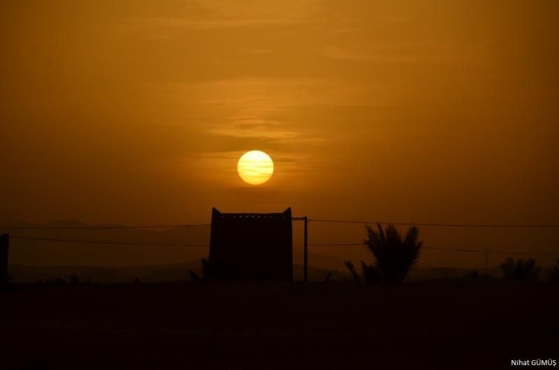 İhtiyaç molalarımız dışında çok fazla durmadan yaptığımız yolculuğun ardından Mezuga’ya (Merzouga) yani Sahra’nın başlangıcına geldik. Sahra Çölü ya da Büyük Sahra Çölü, dünyanın en büyük sıcak çölü. Sıcak çölü diyorum çünkü “çöl” kelimesi insana sıcağı, kuruluğu ve develeri anımsatsa da aslında çöl, sadece sıcak bölgeleri değil soğuk ve kurak bölgeleri de içine alan coğrafi bir tanımdır.
