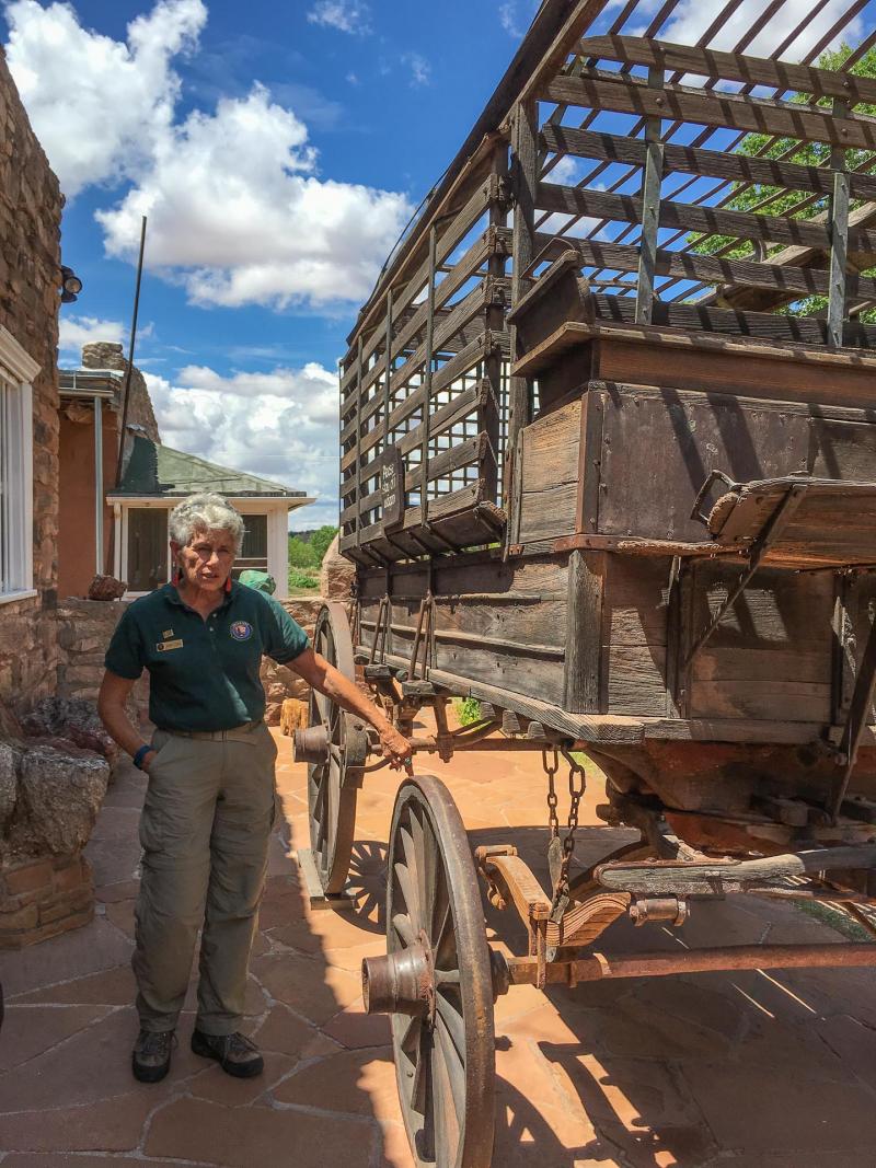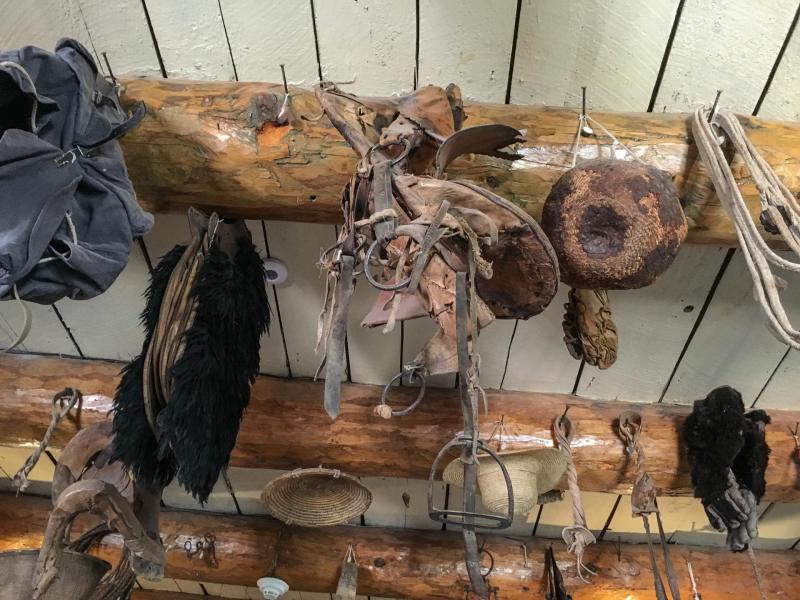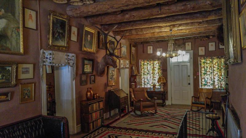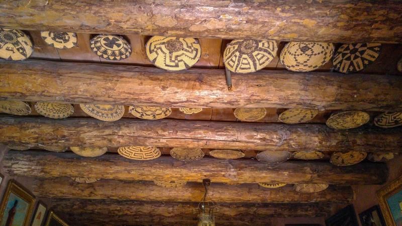 Evi gezdirmek ve Hubbell'ların o zamanki yaşamlarını anlatmak için gönüllü çalışan rehberlerden biri ile tura katılıyoruz. Bugün müze şeklini alan Hubbell'ların evinin tavanı Navajo sepetleri ile dolu.