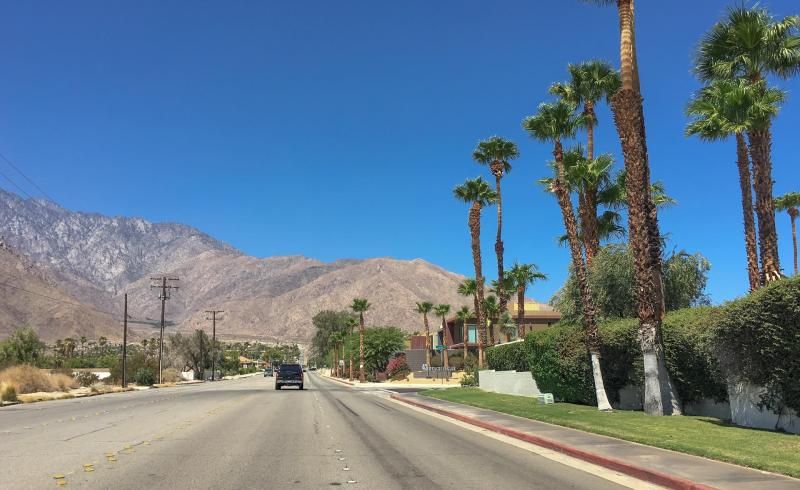 Palm Springs, bölgenin en bilinen kasabası ama aslında Greater Palm Springs adındaki tüm bölge, dokuz farklı kasabadan oluşuyor; Coachella, La Quinta, Indio, Indian Wells, Rancho Mirage, Palm Desert, Cathedral City, Palm Springs ve Dessert Hot Springs. Hepsi neredeyse birbirinin içine geçmiş mahalleler gibi, aralarında bir mesafe yok yani yürürken ya da araba kullanırken birinden diğerine anlamadan geçiveriyorsunuz. Dolayısıyla Palm Springs’e gitmek isterseniz, otel ararken bu kasabalardan herhangi birinde kalabilirsiniz. Bir de tabii en güzel mevsim Kasım-Mayıs arası. Bizim gibi Ağustos’un alnında gitmeyin ☺ Biz sezon sonu gittiğimiz için otel fiyatları inanılmaz düşüktü, böylece en lüks spa otellerinde aslında motel fiyatına kalmak sa mümkün.