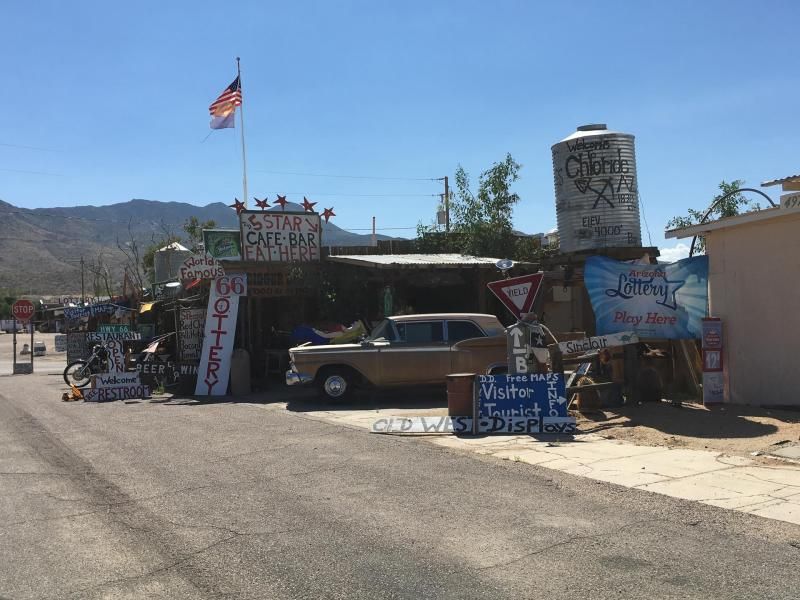 Chloride Kasabası aslında yolculuğun başında planladığımız yerlerden biri değil; sadece her akşam başka otelde yatıp diğer günü planlarken yolumuzun üzerinde burası da varmış, haydi buraya da gidelim dediğimiz yerlerden biri. Ama sonuç güzel çıkınca bunu da paylaşmalıyım dedim. Chloride Kasabası, tam bir kovboy kasabasıymış; 1840’larda gümüş madenine hücum ile birlikte binlerce insan kasabaya akın etmiş. Gümüş dışında altın, turkuaz, çinko da elde edilen madenlerdenmiş. Tren yolları yapılmış. Kasaba o günün şartlarına göre inşa edilmiş ama gümüş bitince bugünkü haliyle neredeyse bir hayalet kasabaya dönmüş.
