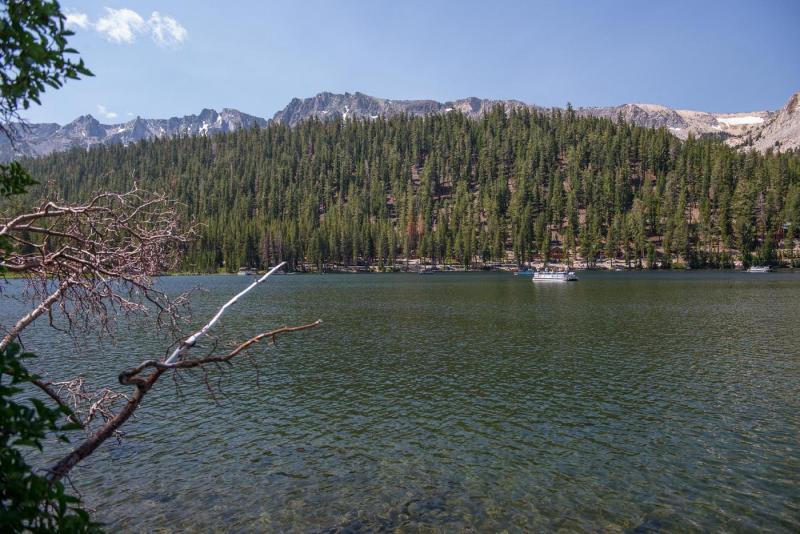 Mammoth Lakes, sıcak su kaynakları ve volkanik granitlerin bulunduğu Long Valley Caldera vadisinin eteklerine kurulmuş. O kadar çok göl var ki isterseniz etrafı ağaçlar ile kaplı bir gölün kenarında balık tutabilir ya da ağaçların altında piknik yapabilir; ya da etrafı daha çok kum ile kaplı olan bir göl de yüzebilir, spor yapabilirsiniz. Bizler gibi denizle büyümüş insanlara göl değişik geliyor ama nedense göl kenarının huzuru da bir başka. Zaten yengeç burcu olmamdan kaynaklı yeter ki bir su kenarı olsun fark etmez, benden mutlusu yok. Twin Lakes, en fotografik olanlardan.