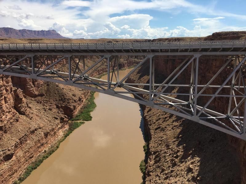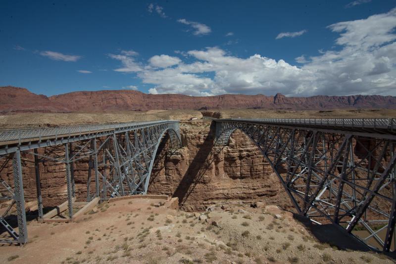 Utah’dan Arizona’ya geçmemizi ve Navajo Land’e girişimizi, Navajo Köprüsü’nden yapacağız. Köprü aslında o kadar eski değil, 1927 yılında yapılmaya başlanıp 1929 yılında trafiğe açılmış. Ama Marble Kanyonu'nun üzerinde işleyen Lee’s Ferry işletmesinin gemileri hariç Colorado Nehri'nin üzerindeki bu bölgedeki tek ulaşım yolu. Colorado Nehri'nin üzerindeki gemiler hava şartlarından çok etkilendiği ve kanyonun duvarları bazı yerlerde çok alçaldığı ve çok güvenilir bir taşıma sağlanamadığı için köprü yapımına karar verilmiş.