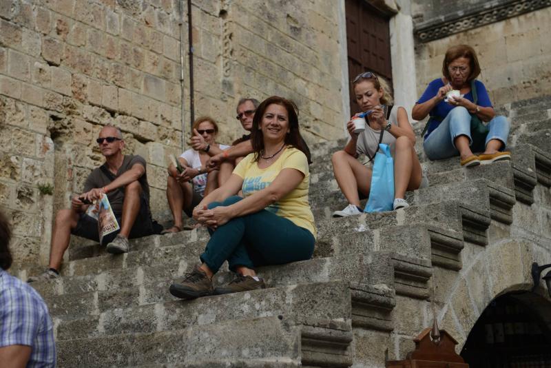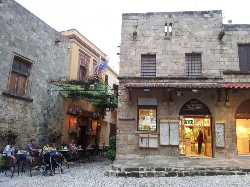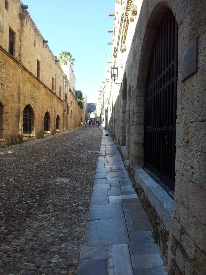 İlk olarak ünlü Sokrates caddesine geliyoruz. Dünyanın her yerinden, farklı tip ve kültürde insana ev sahipliği yapan caddede yürürken, farklı enerjilerin burayı daha da güzelleştirdiğini düşünüyorum. Sağlı sollu hediyelik eşya dükkânların önündeki ürünler adeta renk cümbüşü oluşturuyor. Dantel örtüler, çoraplar, patikler, kartlar, magnetler, zırhlar, masklar, şövalye heykellerinin yanı sıra, bol miktarda nazar boncuğu da var. Caddenin iki yanındaki şövalye evleri ve hanların çoğu konsolosluk binası olarak kullanılıyor. Gözümü kapattığımda kulağıma nal sesleri, aklıma şövalyeler geliyor, hayal alemine dalıyorum.