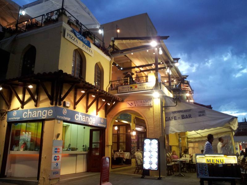Eski kentteki, pek çok mekânda geleneksel Yunan gecesi eğlenceleri yapılıyor. Geleneksel kostümleri içindeki genç kız ve erkekler, Yunanistan'ın çeşitli bölgelerine özel halk oyunlarını sergiliyorlar. Disko, bar ve canlı müzik mekânlarının sayısı bakımından Rodos'un dünyanın en ünlü şehirleriyle yarıştığı söyleniyor. Aynı zamanda burada bir kaç adet lisanslı kumarhane de var.