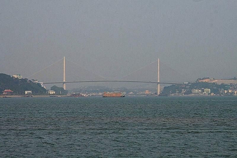 Bizim Junk diğerleriyle birlikte küçük limandan Ha Long Körfezi’ne doğru açılırken dikkatimi çeken yine bir köprü oluyor. Bu köprü merakı nereden geliyor diye sormayın, bilmiyorum. Mühendislikle, mimarlıkla falan da hiç alakam yoktur... Uzaklardaki Bai Chay Köprüsü, Ha Long şehrinin iki yakasını birbirine bağlarken ayrıca Vietnam ile Güney Çin arasındaki otoyolun da önemli bir parçasıymış.