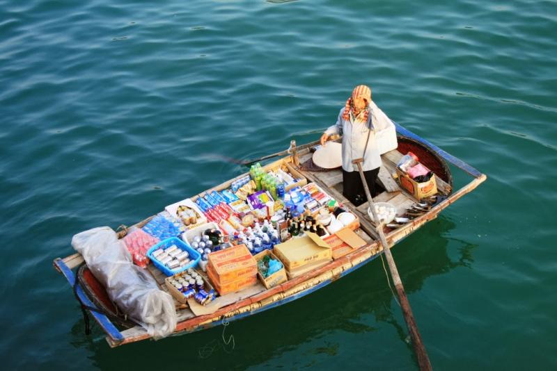 Ertesi sabah harika bir sabaha ve tabii ki yine manzaraya uyandık. Etrafta bizimki gibi pek çok Junk ve aralarında da her biri küçük birer markete dönüşmüş sandallar var. “Sandal-Market”çi kadınlar ellerinde tuttukları Pepsi Cola, Seven-up veya Oreo’ları teknelerin güvertesindekilere gösterip mallarını pazarlıyorlardı. Kahvaltı sonrası Titov (Ti Top) Adası’na gittik. Ada ismini Sovyet Kozmonot German Titov’dan alıyor. Titov ismi, Ho Chi Minh tarafından Sovyet kozmonotun adayı 1962 yılındaki ziyaretinin anısına verilmiş. Adanın küçük ama harika bir plajı var. Bu plajda şezlonglara uzanıp keyif yapmak yerine 400 küsur dik basamağı tırmanarak adanın tepesindeki manzara terasına çıktık. İşte o noktada manzara müthiş, eğer yolunuz düşerse mutlaka çıkın derim, o 400 küsur basamak hiç gözünüzde büyümesin.