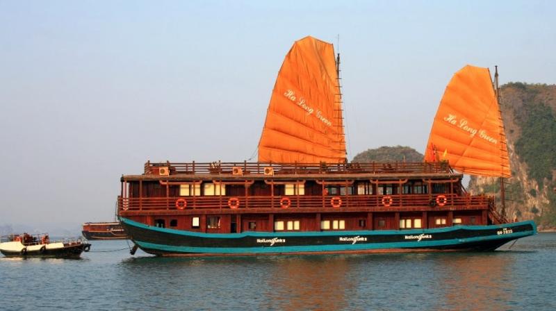 Ha Long’a varır varmaz şehir merkezinde hiç zaman kaybetmeden doğrudan geceyi de geçireceğimiz tekneye biniyoruz. Teknemizin ismi Bien Ngoc 18 yani Deniz Rüzgârı ve bir ihtimal aynı isimdeki 18. tekne. Bölgeye özgü, ahşap, yelpazeyi andıran turuncu renkli yelkenleri olan teknelere Junk deniyor. Bizim Bien Ngoc 18 isimli Junk da beklediğimden çok daha konforluydu açıkçası. Klimalı kamaraları rahat, iki katlı, fena sayılmayacak büyüklükte bir restoran ve bar bölümü olan, üst katında da şezlongunuzda uzanıp etrafı izlemenin keyfini çıkarabileceğiniz bir terasa sahip yaklaşık 30 metre uzunluğunda bir tekneydi. Bizimki gibi 2 günlük bir turun maliyeti, Hanoi-Ha Long-Hanoi transferi de dâhil bugünlerde 112 USD’miş…