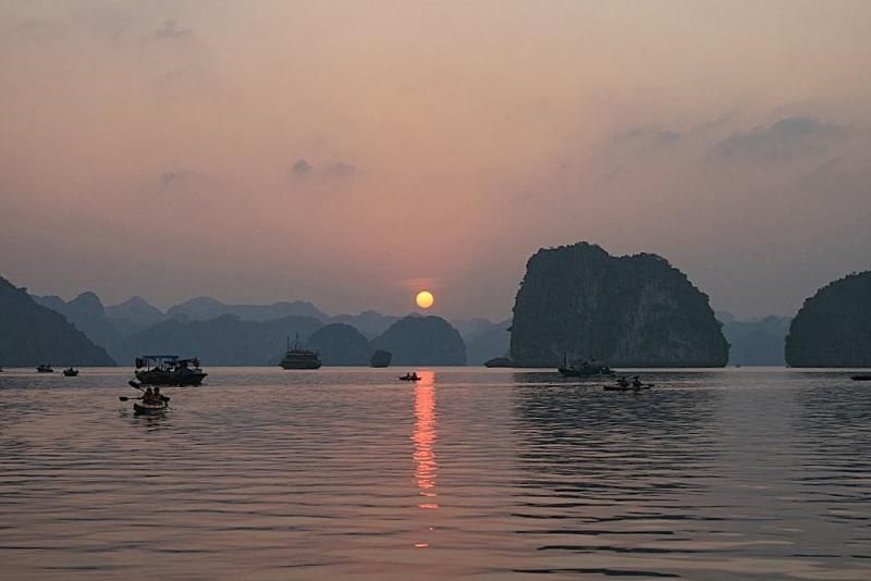 Yüzen köy sonrası körfezdeki gün batımı manzarasının tadını çıkartıp ardından da yemeğe geçiyoruz. Teknedeki deniz ürünleri ağırlıklı akşam yemeği sonrası uyku, belki de yemeğin yanındaki Vietnam şarabının da etkisiyle sorunsuz hatta deliksiz geçiyor. Sorunsuz diyorum çünkü bendeniz bir gezginin sahip olabileceği belki de en büyük lanete sahibim; beni deniz ve dahi her türlü araç tutar. Hani klasik bence “saçma” soru vardır ya “Seyahat çantanızda mutlaka bulunması gereken 3 şey nedir?” diye. Benim için tek şey gerekli; Dimenhidrinat tablet.