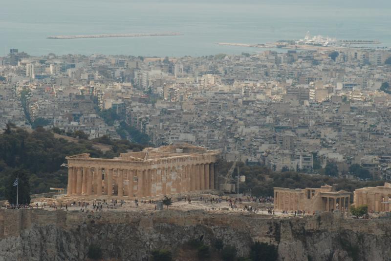 Alışveriş mağazalarını birarada barındıran ve sokak sanatçılarının performans sergilediği Ermou Caddesi´nden başlıyoruz yürümeye. Parlamento Binası´nın bulunduğu Syntagma meydanı´na ulaşıyoruz. Eskiden kraliyet sarayı olan Parlamento Binası´nı koruyan askerlerin nöbet değişimi her saat başı gerçekleşiyormuş, biz maalesef hiçbirine denk gelemedik, ama sizin aklınızda olsun, izlemeye değermiş. Ermou Caddesi´nin paralelinde bulunan ve cafe/restoranlar ile dolu olan Mitropoleos Caddesi´nden geri dönerken zemini pırıl pırıl parlayan Metropolis Atina Katedrali´nin önüne çıkıyoruz. Katedralin ardından Mnisikleous sokağı´na dalıyoruz ve bizi Taksim´de bulunan Cezayir Sokağı'nı andıran bir yer karşılıyor. Cafelerin hepsi dolu, zar zor bir boş masa buluyoruz ve hemen Yunan kahvemizi sipariş ediyoruz. Türk kahvesine oranla rengi daha açık ve daha hafif bir tada sahip olan kahvemizi yudumlarken de haritayı inceliyoruz Akropolis´e hangi yoldan çıkacağımızı belirlemek için.