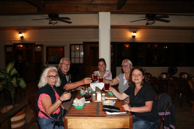 Akşam yemeğinde Belize’ye has bir balık yanında yine Belize usulü fasulyeli pilav ve püre yedik. Burada tüm diğer Orta Amerika ülkeleri gibi Hindistan cevizi oldukça yoğun kullanılıyor. Yemekte tatlı olarak hindistancevizli pasta vardı. Hindistan cevizine bayılırım. Tam da denk geldi çünkü o gün benim doğum günümdü. Bu nedenle gezinin ilk günü Altun Ha’ya giderken yoldaki seyyar satıcıdan aldığımız Kaju şaraplarını da içtik. Grubumuzun hediyesi de beni çok mutlu etti. Gezimizin başlangıcında Orlando’da Kennedy Uzay Merkezi’ne gitmiştik. Oradan bana t-shirt almışlar : ) Süperdi : )