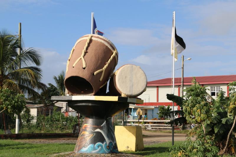 Yaklaşık 9.200 kişinin yaşadığı Dangriga’da nüfusun çoğunluğunu Afrika kökenli Garifuna etnik grubu oluşturuyor. Bu kentin en önemli özelliklerinden biri zamanında köle olarak buraya Afrika’dan getirilmiş olan yerlilerin bu bölgeye adapte olup, buradaki kültürü ve dili kendi müziklerine ve dinlerine de uyumlamış olmaları. Kentin meydanındaki bu 3 vurmalı çalgıya baba, oğul ve kutsal ruh da diyorlar.