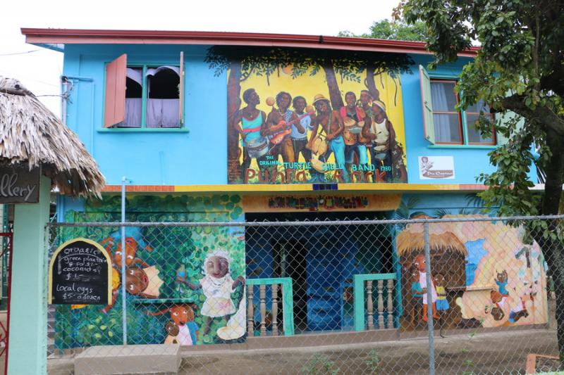 Ardından Dangriga’da bir okul görüyoruz. Aslında bu okulun bir özelliği yok. Ama dış duvarına boyadıkları figürler Belize hakkında kısaca bilgi veriyor.