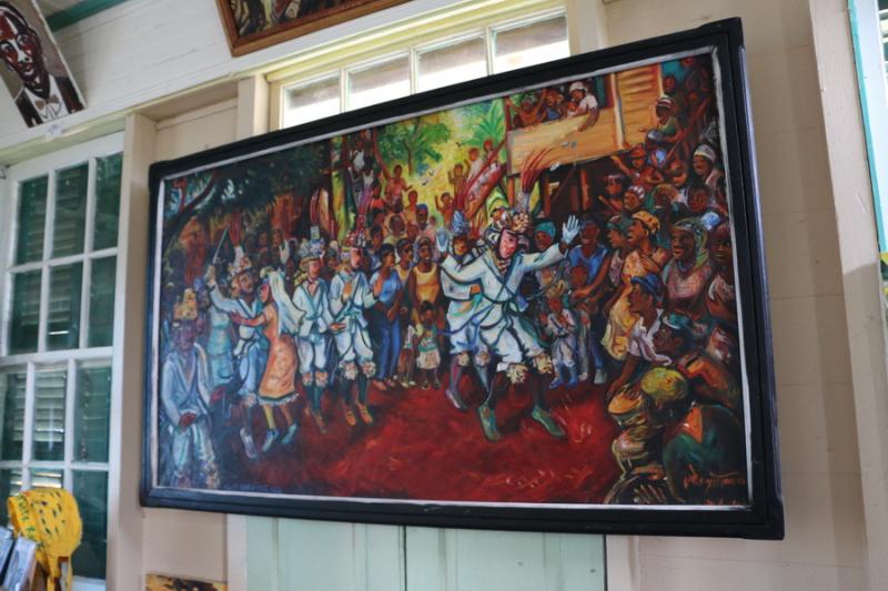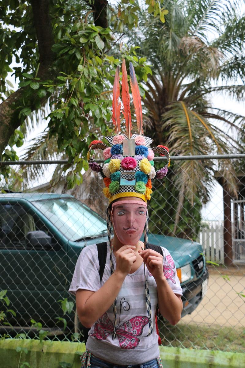 Bu sanat atölyesinde zaman zaman yerel festivallerde kullandıkları maskeler de sergileniyor. Bu maske Orta Amerika’ya gelen Avrupalı beyaz adam ile dalga geçmek için kullanılıyormuş.