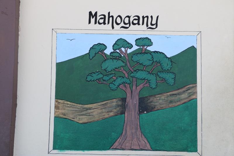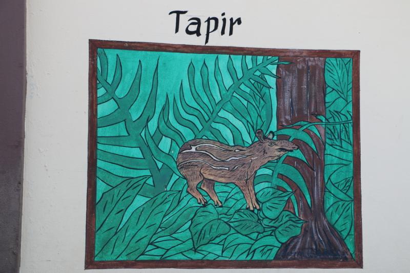 Okulun dış duvarında sırasıyla ülkenin ulusal ağacı Mahogany, bayrağı, ulusal hayvanı Tapir ve ulusal bitkisi siyah orkide resmedilmiş.