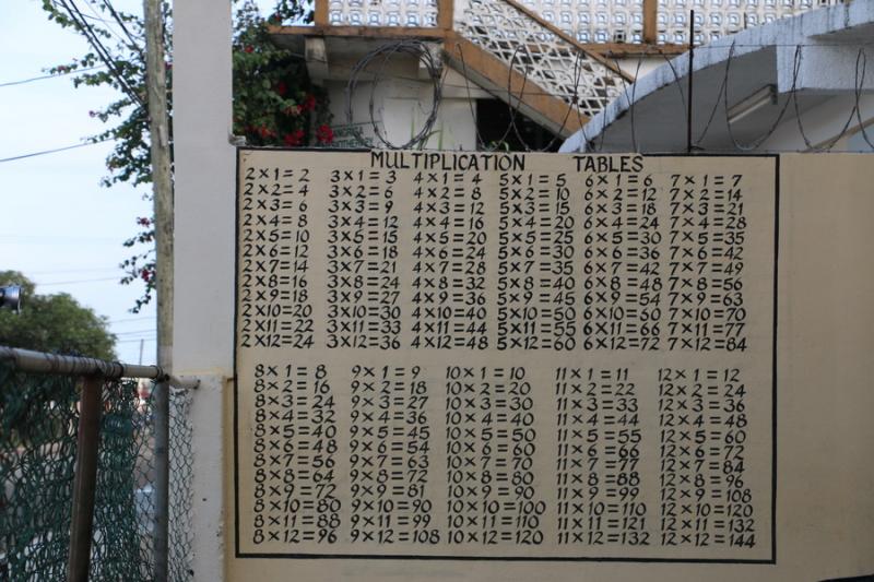 Okulun bahçe duvarında ise dev bir çarpım tablosu vardı. Aslında öğrencilerin bilinçaltına yerleştirmek için güzel. Her an bu çarpım tablosunu görebiliyorlar.