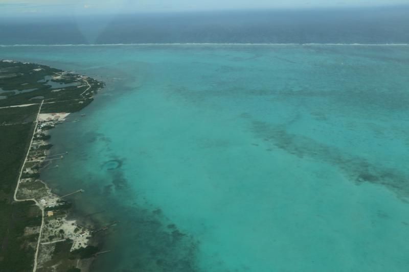 Diğer Belize yazılarımda da bahsettiğim gibi dünyadaki en uzun mercan resiflerinden biri Belize’de. Bu mercan resifleri açık denizden gelen dalgaların Belize kıyılarına ulaşmadan mercan kayalıkları sırasında kırılmasını sağlıyor. Böylelikle Belize kıyılarında deniz oldukça sakin. Bunu neden belirttim? Çünkü San Pedro-Belize City arası uçak yolculuğumuzda mercan sırasının nerede olduğunu, açık denizden bir çizgi gibi nasıl ayrıldığını havadan net bir şekilde görebiliyorsunuz.