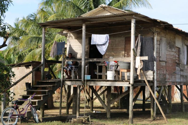 Buradaki evlerin büyük çoğunluğu ahşap bacaklar üzerine inşa edilmiş. Bunun sebebini rehberimiz şöyle açıklıyor: Dangriga, Orta Amerika’da meydana gelen kasırgalardan en fazla etkilenen yerlerden biriymiş. Bu nedenle kasırga döneminde çok yağış olur, su basar diye evleri biraz daha yükseltmek için bu ahşap bacakların üzerine inşa etmişler.