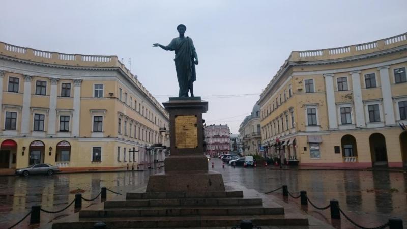 Heykelin önünde 192 basamak aşağıya doğru inen merdivenler, şehrin simgelerinden biri olan Potemkin Merdivenleri. 1837-1841 yılları arasında 200 basamak yapılan merdivenler, daha sonra merdivenlerin aşağısında yapılan yol nedeniyle 192 basamağa düşmüş. Her 20 basamakta bir düzlük bulunan merdivenlere yukarıdan bakıldığında sadece bu düzlükler, aşağıdan bakıldığında ise sadece basamaklar görülmektedir.