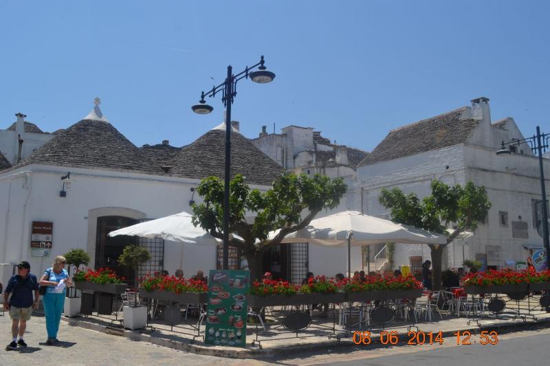 Cruise gemilerinin buraya uğramaları sadece büyük bir liman kenti olması değil elbette, buraya 60 km ve 1 saat mesafedeki bir UNESCO Dünya Mirası... Tabii bizi bu kasabaya götürecek bir tur alıyor ve yola koyuluyoruz, yol boyu üzüm bağları var ve oldukça yaşlı oldukları belli ki çoğunun 1000-1500 yaşında oldukları söylendi, zeytin ağaçları bu yörenin şarap ve zeytinyağı üretimi bakımından zengin olduğunu anlatıyor. Yine yol üzerinde geçtiğimiz bir kasaba olan Putignano ise Ocak ayı boyunca süren karnavalları ve bir ev fiyatına satın alabileceğiniz gelinlik diken terzileri ile ünlüymüş.
