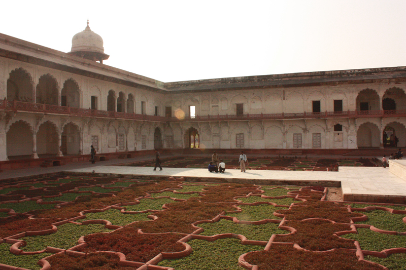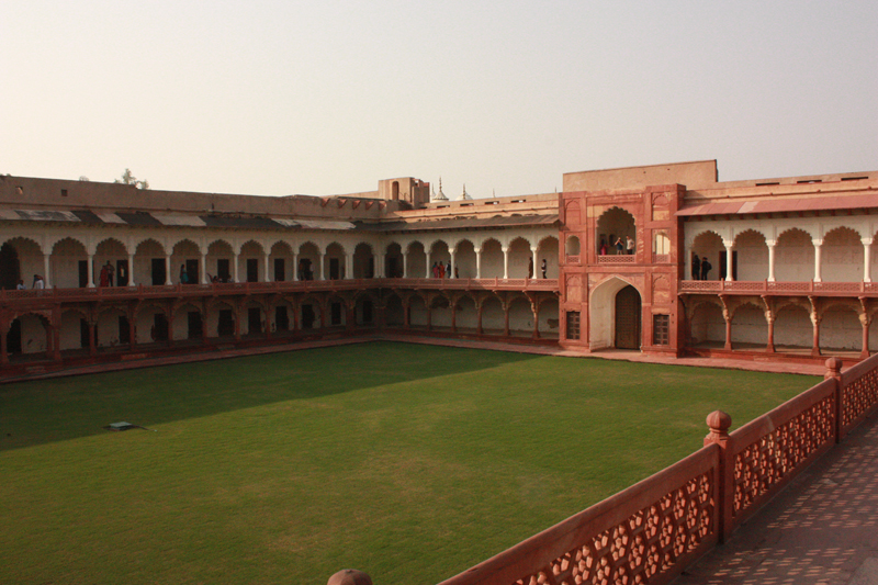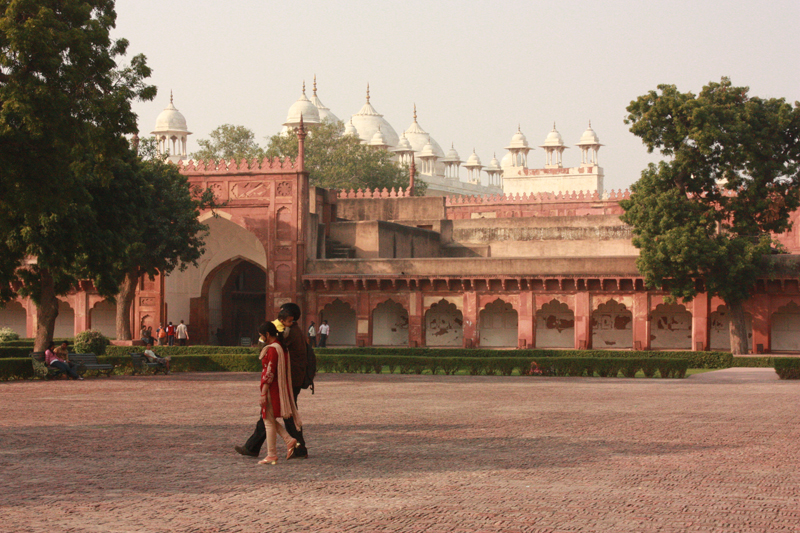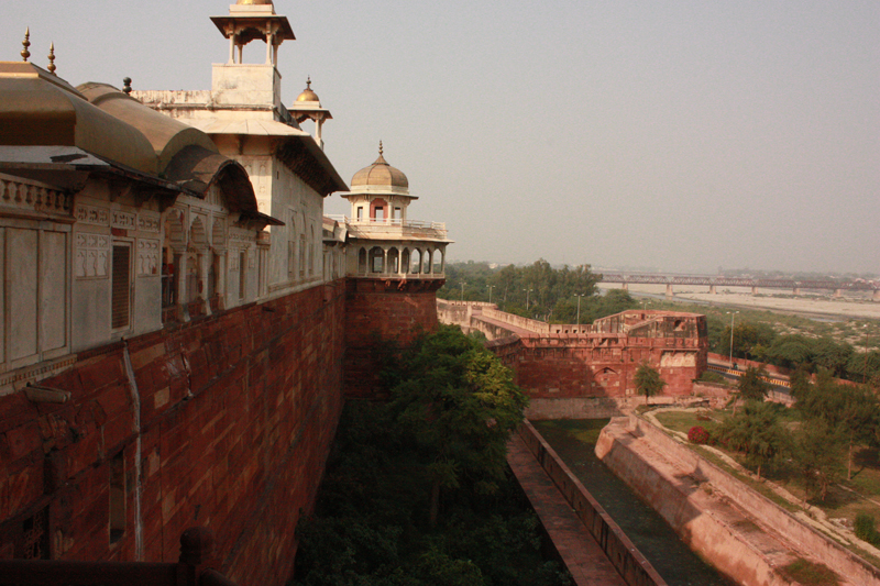 İlk durağımız Agra Fort (Agra Kalesi), diğer adıyla Kızıl Kale. Bu kale 3. Moğol imparatoru Ekber tarafından 1565 yılında yapılmaya başlanmış ve çeşitli eklerin inşasıyla Şah Cihan tarafından bitirilmiş. Tüm kale bölgeden çıkartılan taşlarla yapılmış. Taşların rengi pembe ile kızıl arası olduğundan kaleye Kızıl Kale adı verilmiş.