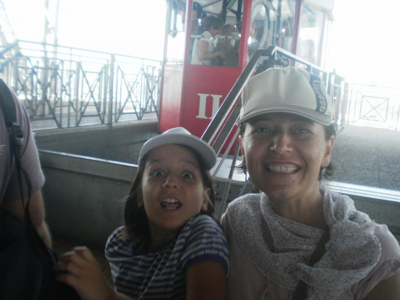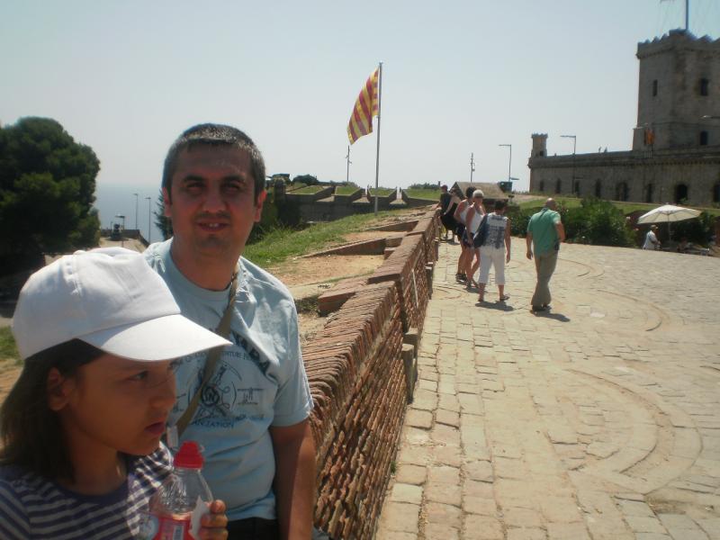 Saat 10.30 civarı kaldığımız otelden ayrıldık. Yürüyerek Arc de Trumf’a vardık. 39 numaralı otobüse binerek St. Sebastian’a doğru yola çıktık. Torre de St. Sebastian’ın önünde otobüsten indik (St. sebastian teleferik kulesi). Montjuik’e giden bu teleferik sadece gidiş kişi başı 10 Euro. Gidiş-dönüş (ida y vuelta) 15 Euro. 12 yaşına kadar çocuk ise ücretsiz. Ben sadece iki adet gidiş bileti aldım (kızım için ücret ödemedim) Buraya toplam 20 Euro ödedim. Bileti aldıktan hemen sonra bir asansöre binerek kulenin en üstüne çıkartıldık. Kulenin en üstünde mükemmel bir manzara var. Bu kuleye sadece bakmak için de 5 Euro karşılığı çıkılabiliyor. Kulenin tepesinde yaklaşık 50-60 kişi kuyrukta bekliyordu. Her bir teleferik maksimum 20 kişi aldığından. Binebilmek için 20 dakika kadar bekledik. Buradan teleferikle Montjuic’e seyahat oldukça keyifli ve manzara muhteşem. Tabii biraz da ürkütücü (benim gibi yükseklik korkunuz varsa). Montjuic’e vardık ve teleferikten indik. Oradan 1-2 kilometrelik bir yürüyüşle kaleye çıkan teleferik durağına vardık. Bu teleferik daha modern ve bekleme gerektirmeyen bir teleferik. 6 kişilik vagonlar peşi sıra durağa geliyor ve yukardan gelenler inip hemen bekleyenler kabinlere biniyor. Hiç durmuyor. Kabine hareket halindeyken biniyorsunuz. Burada bir yetişkin gidiş dönüş 9.30 Euro. On iki yaşına kadar çocuk gidiş-dönüş (ida y vuelta) 6.30 Euro. Toplamda 25 Euro ödedim. Bu teleferik seyahati de çok keyifli. Kaleden Barcelona manzarası muhteşem. Bol bol fotoğraf çektik. Teleferikle tekrar geri döndük.