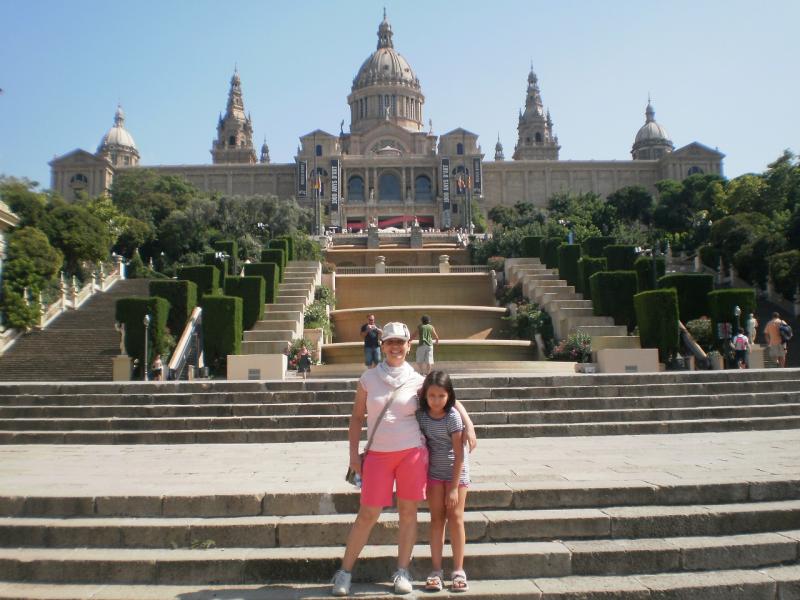 Teleferik durağından sol tarafa doğru yürüyerek Joan Miro sergisinin olduğu binanın önünden geçip MNAC’a (Catalunya Ulusal Müzesi) geldik. Burada Ortaçağ ve günümüz sanat eserleri sergileniyor. Oldukça büyük ve zaman ayırılması gereken bir müze. Buraya giriş için familiar bileti aldım. 5.95 + 5.95 + 0 = 11.90 Euro ödedim. MNAC’tan merdivenleri kullanarak büyülü çeşmeye indik. Buradan yukarıya doğru bakıldığında muhteşem simetrik bir görüntü var. Görüntünün en arkasında MNAC binası var tabii ki… Büyülü Çeşme’den aşağıya doğru devam ettiğimizde FILA kongre merkezinin yanından geçerek Placa de Espana‘ya ulaştık. Buradan L1 Fondo istikametine metroya binip 6 istasyon sonra Arc de Trumf'da indik. 10 dakika sonra saat 18.00 civarı dairemizdeydik.