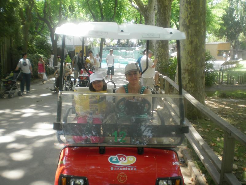 Burası devasa ağaçlar içerisinde ve hayvanların kendi yaşam alanlarının taklidine önem verilerek dizayn edilmiş pırıl pırıl bir hayvanat bahçesi. Biletleri alırken, camekânda saat 11.30’da yunusların gösterisi olduğunu okumuştum. Baktım saat 11.20 hayvanat bahçesini turlamaya başlamadan yunusların gösteri yaptığı alana gittik. Orada yaklaşık yarım saat süren enfes bir gösteri izledik. Tabii bu gösteri de aldığımız giriş biletine dâhil. Hayvanat bahçesinde yarım saat gezdik. Baktım kiralık elektrikli arabalar var. 4 kişilik elektrikli arabaların bir saati 25 Euro. Bir saat de elektrikli arabayla dolaştık. Saat 14.00’te oradan ayrıldık. 15 dakikalık bir yürüyüşün ardından Barcelonata’ya ulaştık. Orada bir restorana girip: deniz mahsullü paella, macarone de tuna souse yedik. Günün menüsü 14.50 idi. Biz iki menü aldık. 29 Euro ödedik. Tatlı olarak da meşhur la crema de Catalana yedik. Bildiğimiz vanilyalı pudingti. Biz de yapılandan tek farkı üzerinde sert bir katman olması (şeker karamelize edilmiş).