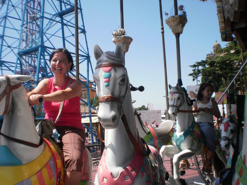 Sabah 10.00 civarı evden çıktık. Bugün Tibidabo’ya gidiyoruz. Bundan en çok memnun olan kızımız olacak. Çünkü burası Barcelona’ya tepeden bakan ve gidenlere muhteşem panoramik bir Barcelona ve Akdeniz manzarası sunan bir lunapark. Metro ile Katalonya Meydanı’na gidiyoruz. Las Ramblas’ın hemen bittiği yerin karşısından üzerinde büyük harflerle “Tibidabo” yazılı bir otobüs var. Bu otobüste T1 biletimiz geçmiyor. Bileti 2 Euro civarı otobüsün içinden alıyorsunuz. Bu otobüs buradan yarım saatte bir kalkıyor. Yirmi beş dakikalık keyifli bir yolculuktan sonra (otobüs nefis bir Barcelona manzarasını aşağısında bırakarak Tibidabo’yu tırmanıyor) Tibidabo’dayız. Burası harika. Burada Barcelona’ya tepeden sanki küçümseyerek bakan bir kilise var. Oldukça haşmetli bir görüntüsü var. Ağaçların altında birkaç yüz metrelik keyifli bir yürüyüşün ardından Lunapark’ın içinde buluyorsunuz kendinizi. Buradaki gişeden 60 Euro ödeyerek aile bileti aldım. Üçümüzün bileğine de bizim her şey dâhil tarzı otellerimizde taktığımız tarzda bir kâğıt bileklik taktılar. Bu şekilde lunaparktaki bütün eğlence unsurlarını o gün içinde istediğiniz kadar kullanabiliyorsunuz. Aslında kişi başı 25 Euro’dan 75 Euro tutuyor. Ama Tibidabo’ya gelirken bindiğiniz otobüsten size verilen ödeme fişini gişeye verdiğinizde toplam tutardan oraya geliş için otobüse ödediğiniz ücreti düşüyor. Ayrıca Dönerken kullanacağınız otobüs biletlerini de size veriyorlar. Yani dönüşte bu biletleri otobüse veriyor ve ayrıca para ödemiyorsunuz.