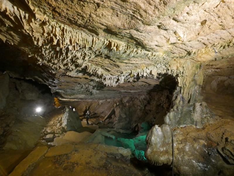 Mağaranın içinde doğal sarkıtlar ve dikitler var.