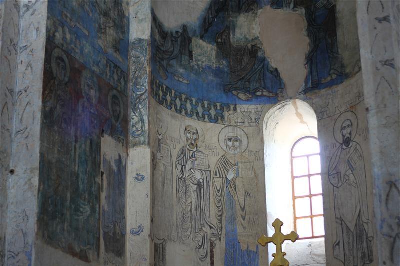 Kilisenin içerisinde ise yine aynı döneme ait resimler ve konular duvarlara resmedilmiş.