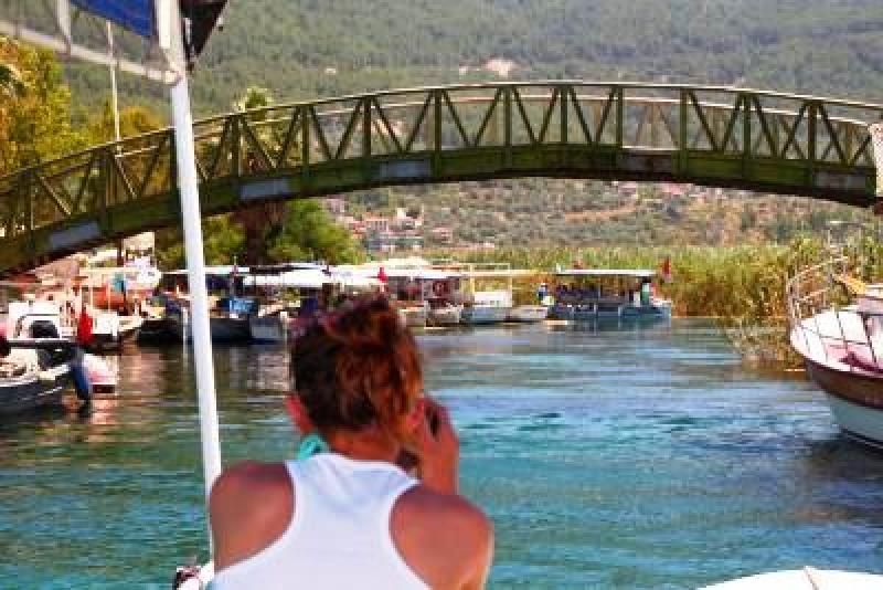 Balıkçıdan ayrılınca Azmak Deresi turu yapmak üzere sahil kıyısında bulunan küçük teknelere yöneldik. 8 kişi tamamlanınca hareket eden teknelerde kişi başı ücret 5 TL. Eskiden evlerde çeşme olmadığı için kadınlar derenin kıyısına gelip çamaşırlarını yıkarlarmış. Sıcaklayıp suya dalan kadınları gören kişilerin "Kadınlar Azdı" diye tabir etmesiyle başlayan sohbet, zamanla derenin isminin "azmak" olarak anılmasına sebep olmuş. 2 km uzanan Azmak Deresi dağın eteğinden başlayıp denize kavuşmasıyla noktalanıyor. Derede yüzen ördekler, berrak bir suyun içinde yemyeşil bitkiler ve çeşit çeşit balıkları görünce kendimi bir akvaryumun içinde hissetim. Kıyı boyunca lokantalar yer almakta. Kaptanımız derenin derin bir noktasında yüzmek için kısa bir mola verince, içimizdeki en cesaretli kişi Mehmet oldu. Bir çırpıda suya atlayıverdi, ardından Huriye. Ben ise emin adımlarla inmek isterken adeta kendime bir Çin işkencesi uyguladım. Atlayınca derenin dibinden ürktüğüm için teknenin merdivenlerinden inmeyi denedim. Azmak’ın suyu, ayaklarımın değmesiyle birlikte Haziran güneşinin içime ışınladığı sıcaklığı vakumlanmaya başladı. Son derece insanı rahatlatan kısa bir yüzmenin ardından tekrar tekneye çıktım.