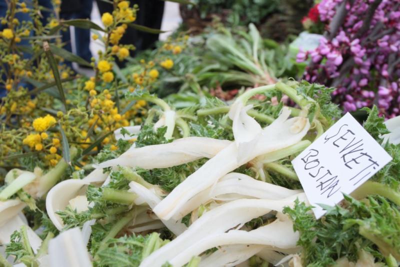 Yüzlerce tezgâh üzerinde sergilenmiş ot yemekleri, reçelleri ile enginar tatlısı, pancar pastası, otlu döner, pazılı-ıspanaklı pasta gibi bugüne kadar hiç görmediğim bir görsellik ve lezzetle karşılaştım. 40 çeşit baharatlı kurabiyelerden lavantalı ekmeğe kadar yenilebilecek tüm yeşillik ve sebzelerin, zeytinyağlısından tatlısına kadar pek çok çeşidini burada tattım. Radika ve şevketi bostan festivalin en gözde otlarından olsa da enginar ve cibes otu da oldukça boldu ama benim favorim “şevketi bostan” idi. Şevketi bostan aslında bizim pek çok yerde sıkça rastladığımız bir diken türü… Her derde deva olduğu söylenen bu bitki kökünü çıkarmak oldukça zahmetli. Hem etli hem de zeytinyağlısı pişiriliyor. Ben güveçte pişirilen kuzu etli “şevketi bostan”ı çok beğendim.