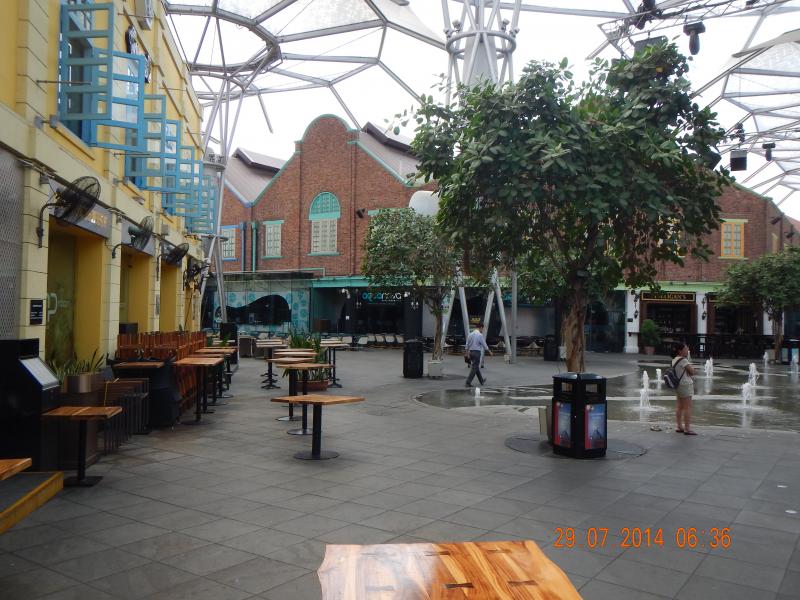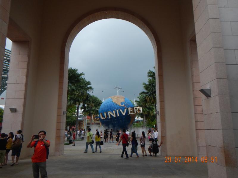 Gezimizde bundan sonraki ziyaret edeceğimiz yer Sentosa Adası’ydı. Sentosa Adası’na karayolundan da ulaşım var. Aynı zamanda teleferikle de adaya ulaşım sağlanıyor. Biz karayolundan adaya ulaştık ve yer altında büyük bir otoparkta şoförümüz bizi bıraktı. Akşam aynı saatte bizi oradan alacağını söyledi. Yukarıya çıktığımızda gördüğümüz manzara Sentosa Adası’nın ismiyle uyuşmuyordu. Sentosa, Malay dilinde sakinlik demekmiş ama çok büyük bir eğlence merkezi bizi bekliyordu. Alışveriş yapılacak mağazalar, yemek yeme alanları, orijinalini aratmayan Universal Stüdyo, casino, beach vb. yerlerin olduğu böyle bir yere sakin denemezdi.