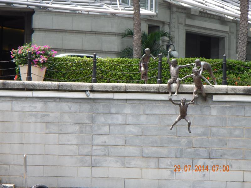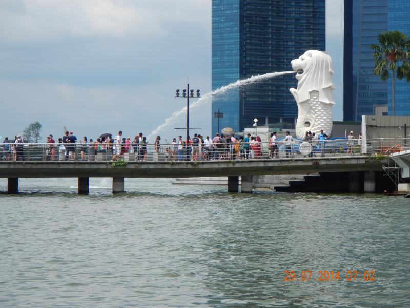 Tapınak gezimizden sonra teknelerle şehrin içinden geçen bir nehir üzerinde gezinti yaptık. Bu gezinti sırasında o büyük muhteşem binaları yakından görme şansınız bulunuyor. MARİNA BAY bunlardan en ilginç olanı. Bütün Singapur’u yukarıdan izleme şansı bulabileceğiniz büyük bir gemiyi andıran bu binayı sadece dışarıdan görebildik. Aynı zamanda ARTSCIENCEMüzesi, aslan başlı balık gövdeli MERLİON heykeli ve nehrin iki yanını birbirini bağlayan ilginç köprüler güzel görsel zenginliklerdi.