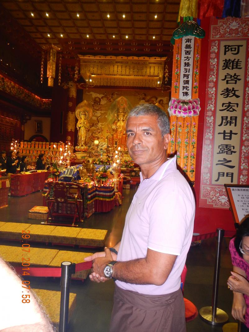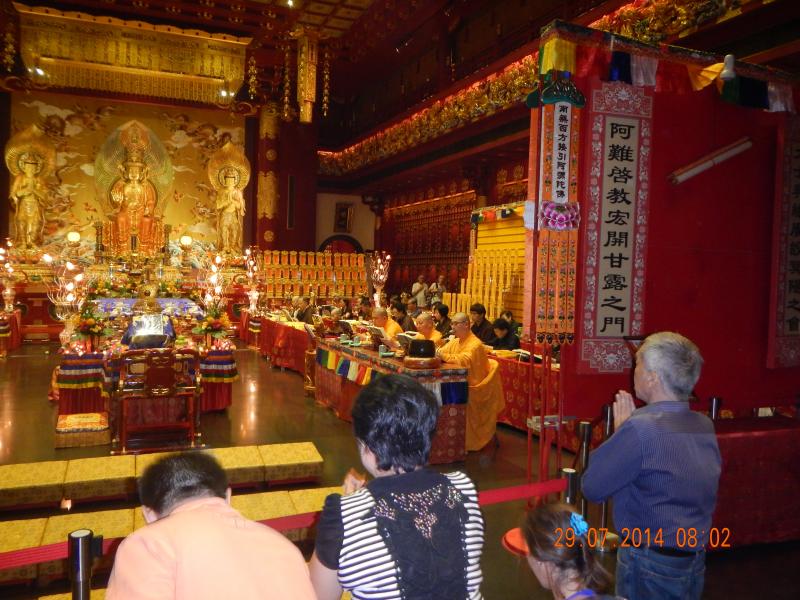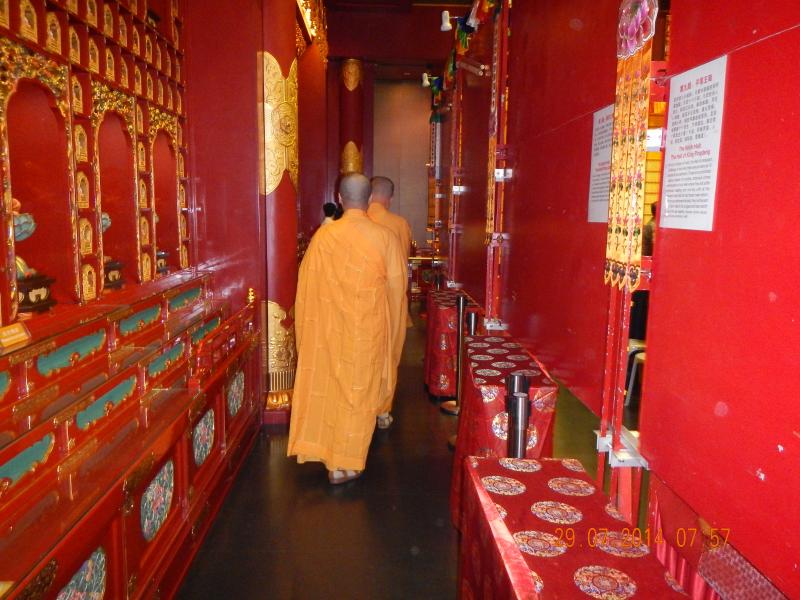 Bundan sonraki durağımız bir Budist tapınağı. Hiç görmediğim için bende merak uyandıran ve sabahtan beri gördüğüm en ilginç mekândı. Singapur’daki en büyük din grubunu Budistler oluşturuyor. Sonra Müslümanlar, Hristiyanlar, Hindular ve diğer dinler diye bir sıralama yapabiliriz. Tapınağa girerken kadın-erkek özellikle bacaklarını örtüyor. Biz de saygı duyarak kapının önündeki üst üste katlanmış örtülerden alıp belimize sardık. İçerideki bol ışıklar altındaki süslemeler ve Budistlerin tanrılarını ifade eden heykeller görsel olarak göz kamaştırıcıydı. Onlar için bir tapınma yeri, bizim için de bu din için aklımıza gelen soruların karşılığını bulabileceğimiz bir mekândı (Budizm ile ilgili bilgileri Phuket’teki rehberimizden almıştık Phuket yolculuğumuzda). Her heykelin önünde inanışları gereği yaptıkları saygı duruşları ve duaları oldukça ilginçti. Saçlarını sıfıra vurup, turuncu renkte bir giysi ile bedenlerini sarıp; hayattaki acıyı, ızdırabı ve tatminsizliğin kaynaklarını bulmak ve araştırmak temel ilkeleri. Katiyetle sizinle fotoğraf çektirmiyorlar. Sonradan öğreniyoruz ki teknolojinin hayatlarında yer almaması gerekiyor. Çok uzun yazılacak şeyler var ama sizi sıkmak istemiyorum. Sadece gözüme çarpan ve ilginç bulduğum detayları sizinle paylaşıyorum. Turuncu rengin enerjilerini yükselttiğini düşünüyorlar. Az yemek yemek, seks yapmamak ve teknolojiye uzak yaşamak Budist bir rahibin yaşamında olması gerekenler…