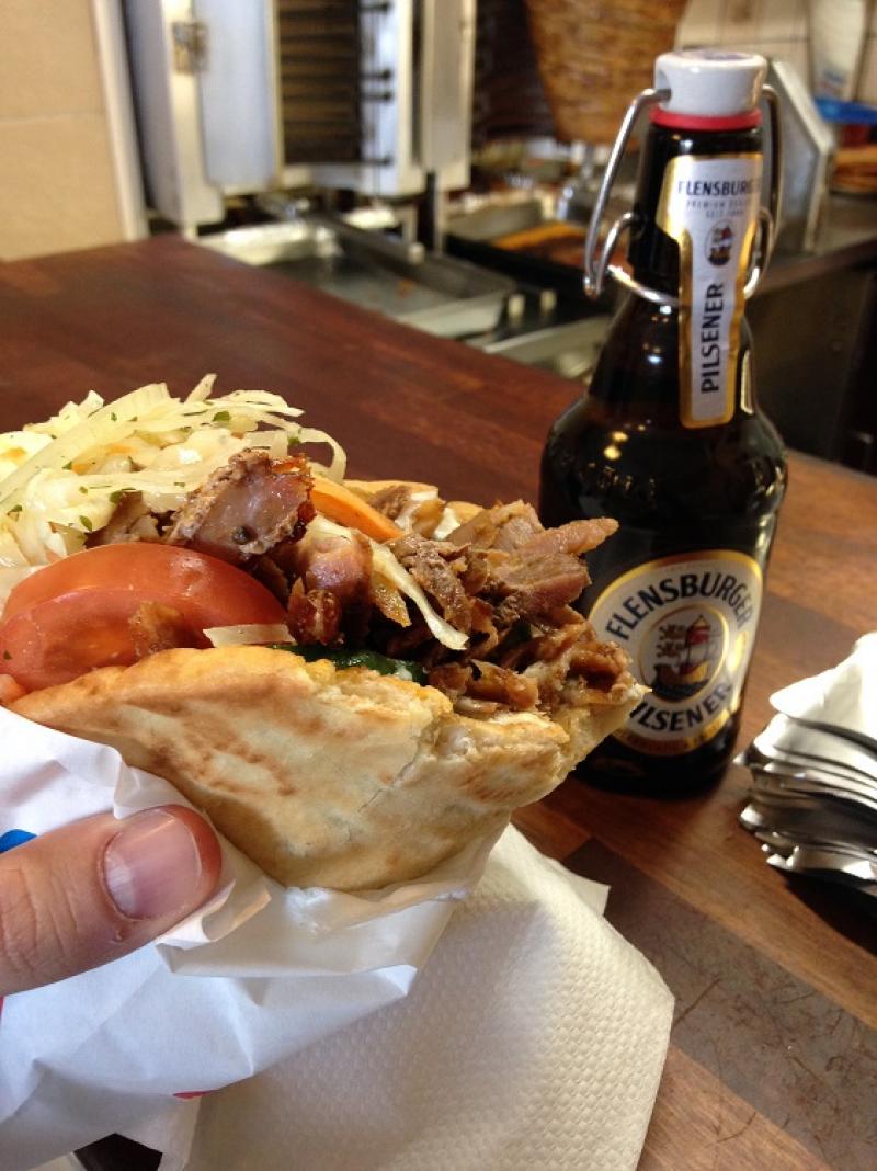 Papas İmbiss: Liman bölgesinde yer alan ayak üstü atıştırmalık domuz döneri satan bir Yunan dükkânı burası. İçeride ise bizden biri, 20 yıldır Almanya’da yaşayan Bahattin Abi var. Eğer her türlü lezzete benim gibi açıksanız bu harika döneri mutlaka tadın derim. Büyük pidesi özel yağda bekletildikten sonra bol soğanlı sosu ve yeşillik ile servis edilen döner oldukça lezzetli. Adı Gyros Pita.
