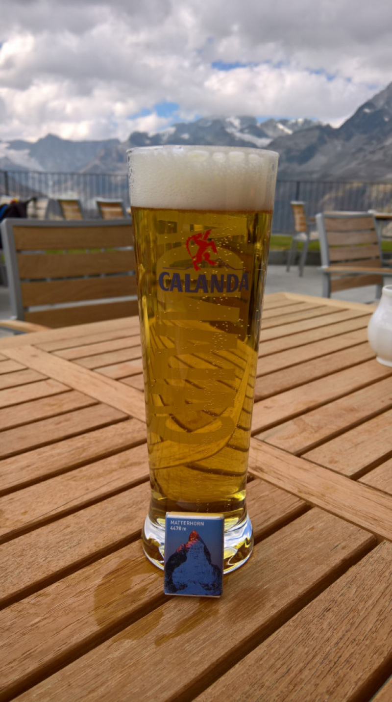 Riffelsee’deki fotoğraf ve yemek molamızın ardından Riffelberg’e doğru yolumuza devam ediyoruz. Daha uzun ama daha kolay olan rotayı geçiyoruz ve yaklaşık 40 dakika sonra Riffelberg’e varıyoruz. Burada da Gornergrat’taki gibi bir otel-restoran bulunuyor. Manzara enfes! O nedenle burada bir şeyler içmeye karar veriyoruz.