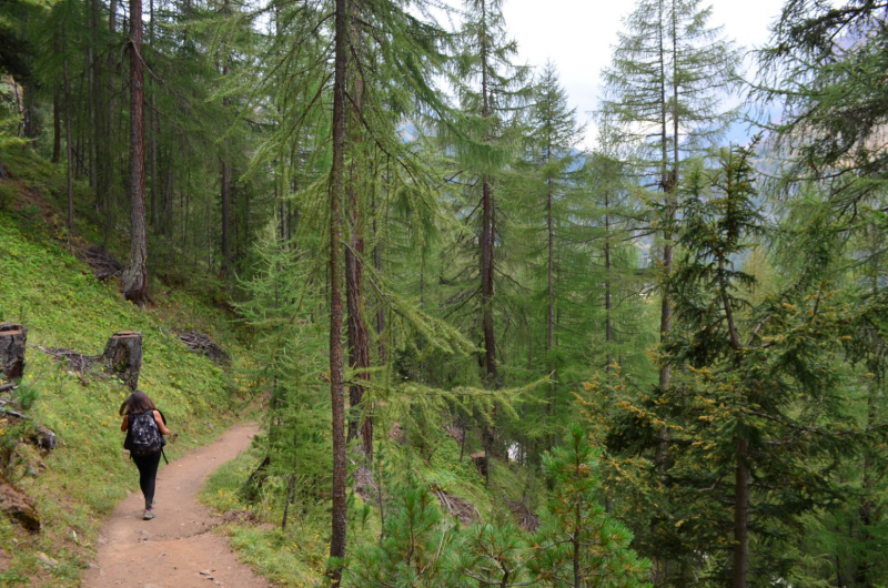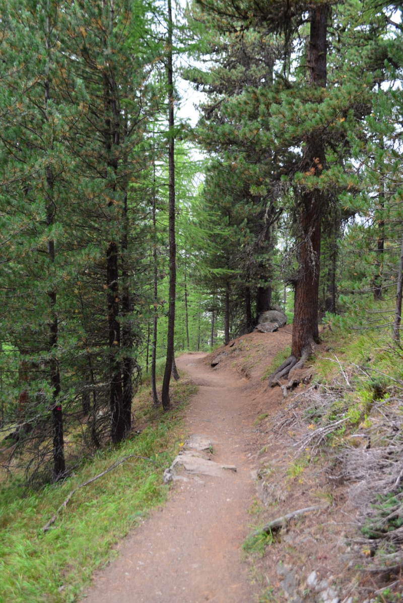 Riffelalp’den son varış noktamız olan Winkelmatten’e birkaç farklı rota üzerinden gitmek mümkün. Vakit de ilerlediği için biz en kolay rota olan, Findelback rotasını tercih ediyoruz. Zaten bu seviyeler ormanların başladığı yükseklikler olduğu için, genelde oldukça keyifli rotalar sunuyor insana.