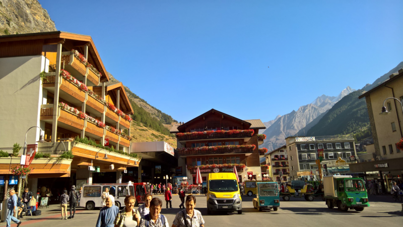 Zermatt’ın sokakları oldukça dar. Bu nedenle minibüsler, çöp arabaları ve postacı arabalarının hepsi bu standartlara göre dizayn edilmiş durumda. Matterhorn’da adeta çirkin bir ev yok desek hatta evlerin hepsi çok güzel desek yeridir. Evler hem bakımlı hem de o kadar özenle süslenmişler ki oturup saatlerce inceleyebilirsiniz. Tabii ki bu güzel evlerin manzaralarını daha da güzelleştiren bir dev de cabası: Matterhorn.