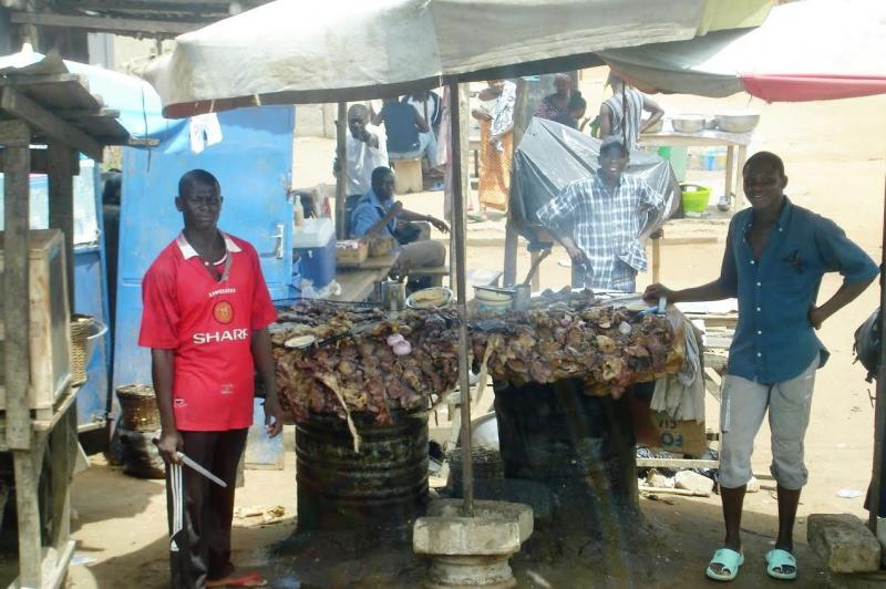 Yabani muzdan yapılan ve adına “plantain” denilen bir yiyecekle yine görünümü ve tadı itibariyle patatesi andıran bir bitki olan “yam” da tüm Gana’da olduğu gibi burada da satılıyor. Diğer ilginç bir durum da tuzaklarla yakalanan köstebeklerin kızartılmak suretiyle sokak pazarlarında satılması. Bütün ana yol kenarlarında bu şekilde kızarmış köstebek satıcılarına rastlamak mümkün.