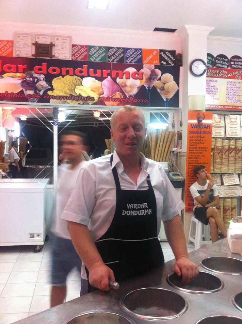 Elbette ki tatilde çılgınlar gibi yiyoruz, içiyoruz. Çok şükür… Altınoluk çarşısının Vardar Dondurmacısı'nı ben çok sevdim. Zaten dondurma denince akan sular duruyor, biliyorsunuz. Karadutlu, damla sakızlı, kestaneli, tarçınlı… Çalışanları öyle kibar ve güler yüzlüler ki… Dondurma alırken birkaç kez lütfen dedim ve onlarla samimi bir şekilde sohbet ettim diye bana yapmadıkları sevimlilik kalmadı, sağ olsunlar…
