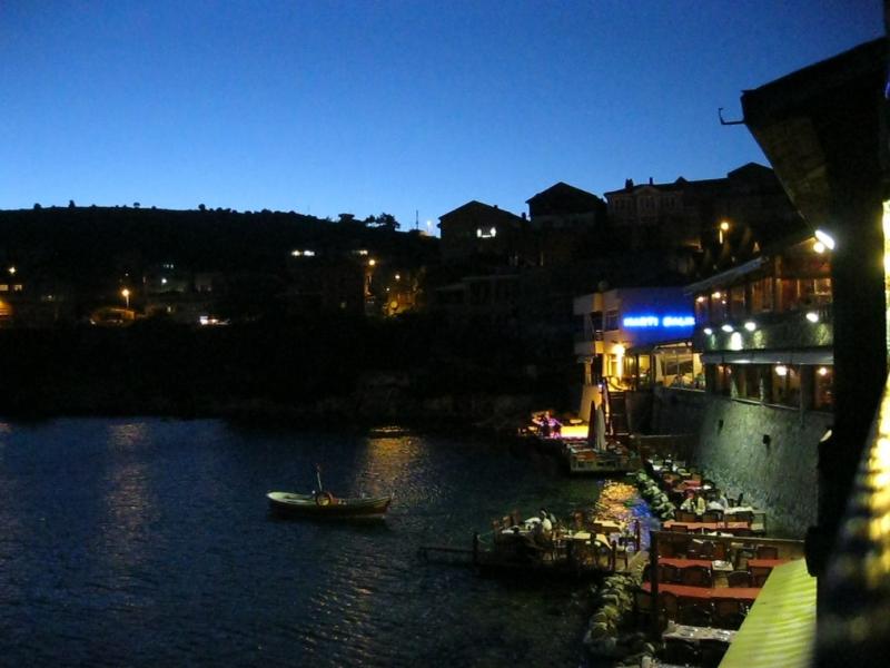 Akşama yakın, biletlerimizi almak üzere yazıhaneye yaklaşıyoruz; iki seçenek var önümüzde ya gece otobüsü ya da 2 saat sonra hareket edecek akşam otobüsü… Rakı-balık yapmak için 2 saat az bir süre, çok kararsız kalarak akşam otobüsüne alıyoruz biletleri… Balığı yiyelim, rakısı eksik kalsın diyerek… Amasra’da her daim taze balık bulmanız mümkün; biz tercihimizi Mustafa Amca’nın yerindeki barbundan yana kullanıyoruz, enfes…