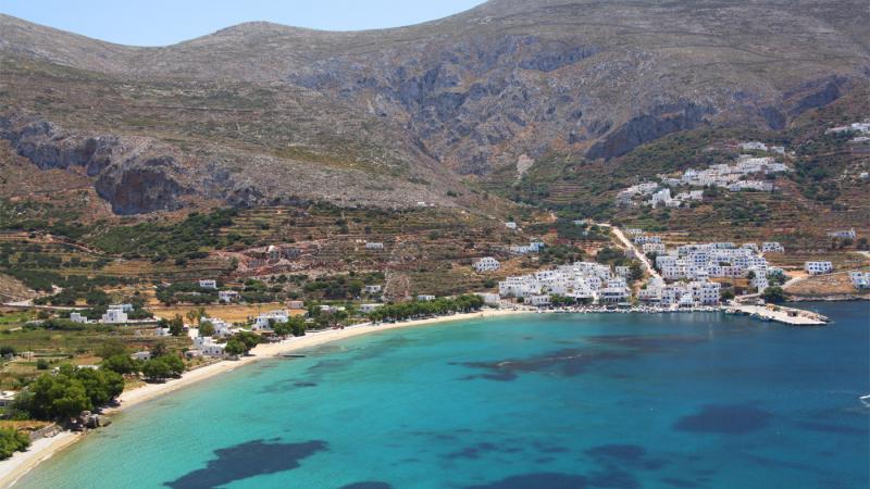 Yalnızca 33 km uzunluğunda olan ve en geniş noktası 6 km’yi geçmeyen ada dağlık ve tepelik. Zirveleri -en yükseği Krikellos 823 metreye ulaşıyor- çoğunlukla sisle kaplı ya da bulutlarla örtülü, bu bulutların oluşmasıyla denize doğru dağılması bir oluyor. Üç ana yerleşim yeri, adanın size sunacağı her şeyden biraz tattırıyor: Katapola ana liman, tepelere yerleşmiş Khora etkileyici bir konumda, Aegialis ise deniz kenarında şirin bir köy.